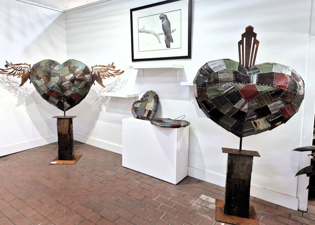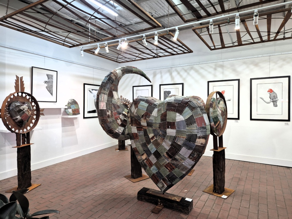 “Metal Hearts and Coloured Wings @ BAAG” showcases Darren Gilbert’s art celebrating Australia’s environment, featuring handmade metal sculptures and pen and ink bird drawings that inspire appreciation and reflection.